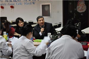 张院长代表院领导迎接台湾专家。来院后,各位专家与院领导开展了相应的会议交流。张院长、护理部李主任都参与了会议讨论。会上,台湾各专家与院领导在医院的管理、经营等方面进行交流。院领导向专家团介绍了包含医院组织架构、职务说明、分工、考核等经营现状。同时,护理部、行政部、住院部等部门代表也向专家们介绍了各自部门现状。